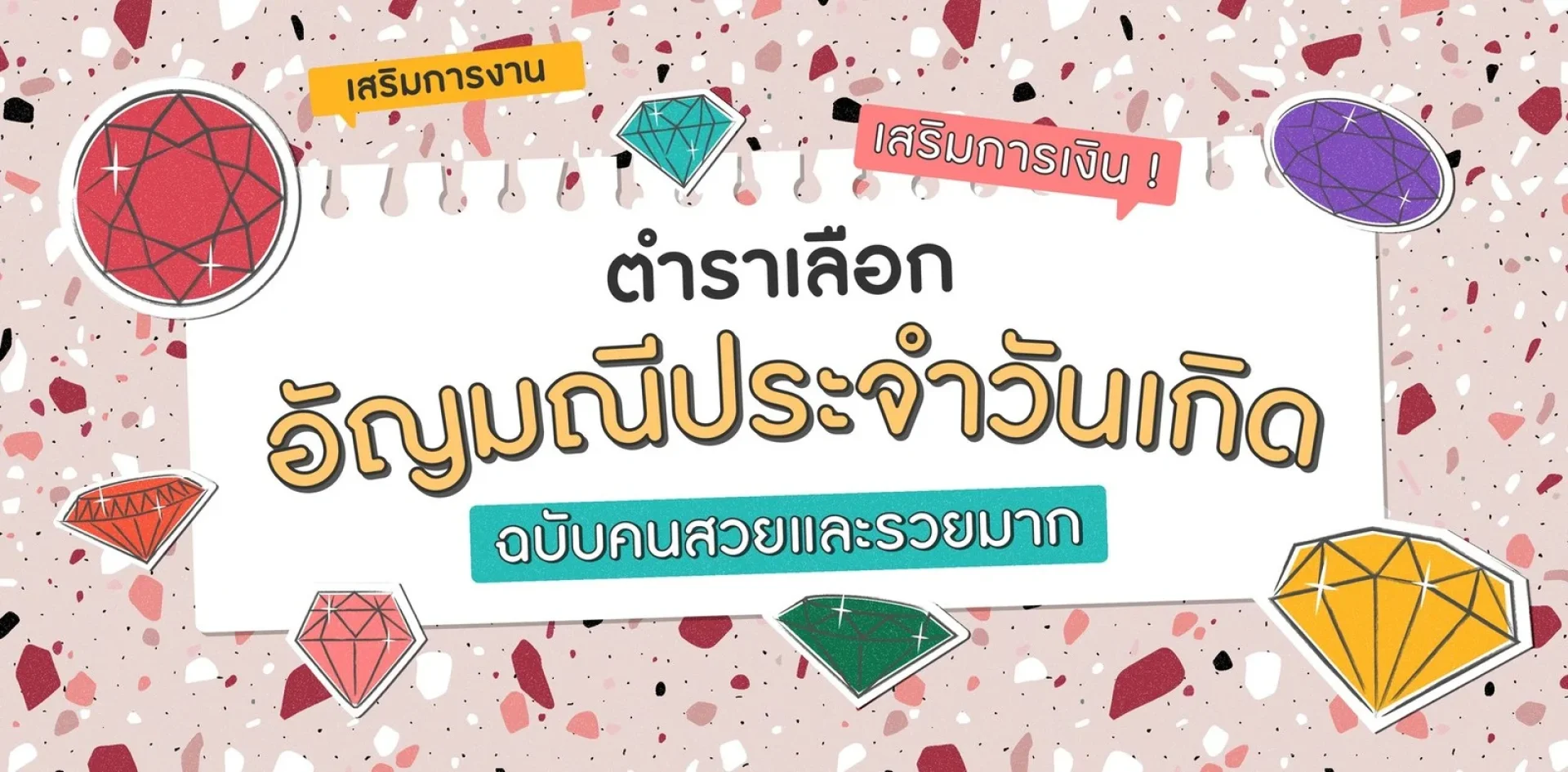 อัญมณีมีเป็นร้อยเป็นพันอย่าง สาวคนไหนคิดจะซื้อเพชรพลอยมาประดับติดตัวอยู่ คงจะเลือกไม่ถูกกันเลยใช่มั้ยล่ะคะ จะซื้ออัญมณีแบบไหนดีนะ? ทับทิม มรกต หรือพลอยตัวดังแบบที่เค้าว่ากัน พูดเลยว่าของแบบนี้จะซื้อทั้งทีต้องเลือกอัญมณีที่เสริมดวงด้วยถึงจะปังงง! ที่สำคัญควรเป็นอัญมณีประจำวันเกิดด้วยค่ะ เลือกให้ดีจะช่วยเสริมดวงด้านต่าง ๆ ไม่ว่าจะเป็นโชคลาภ การงานการเงิน วันนี้ชวนมาดูอัญมณีประจำวันเกิดตามประสาคนสวยและรวยมากกก อยากเสริมดวงด้านไหน ไปดูกันเลยจ้า